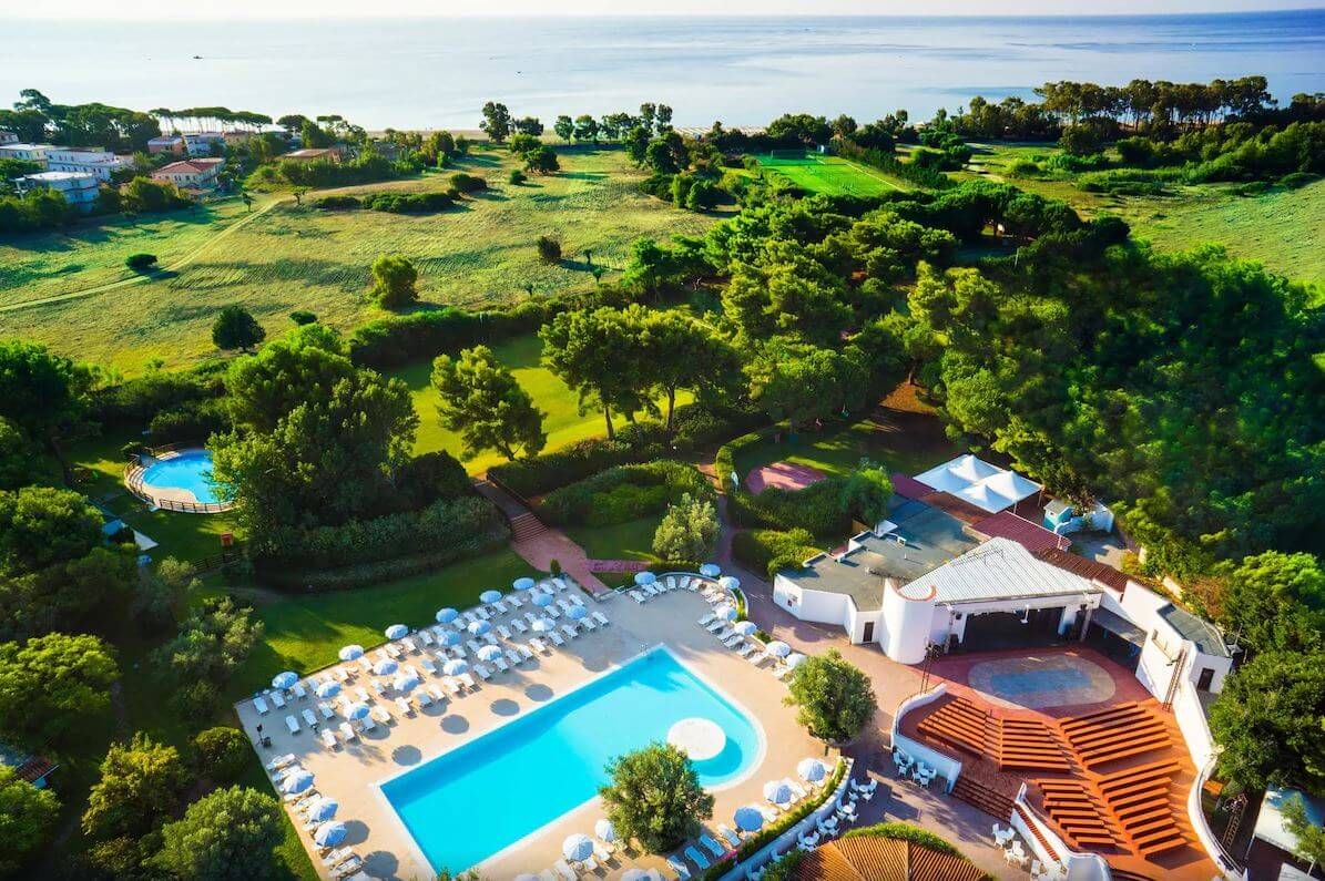265-room resort surrounded by greenery with private beach, swimming pool, sports fields, wellness center and meeting room.