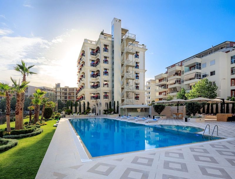 4-star hotel in the center of Tirana with swimming pool, fitness center, garden, terrace and spa.