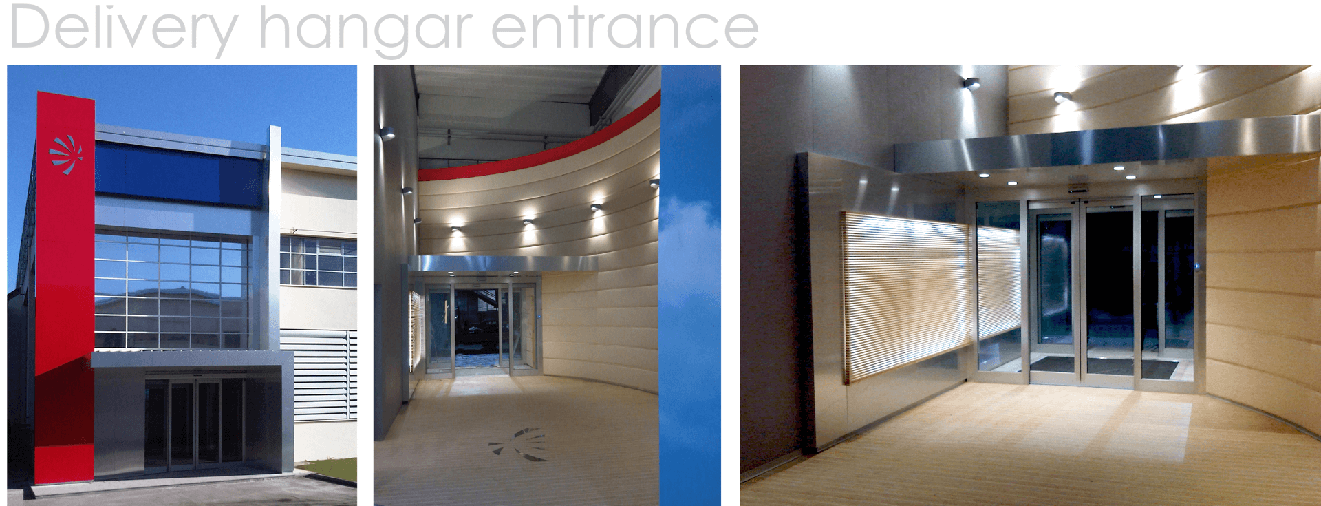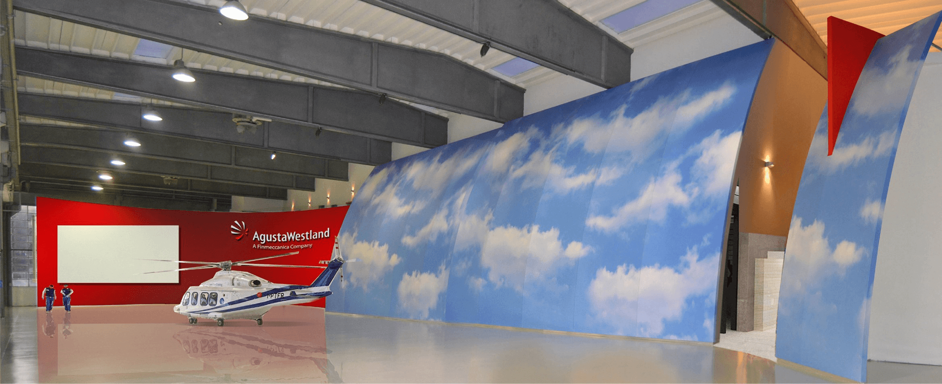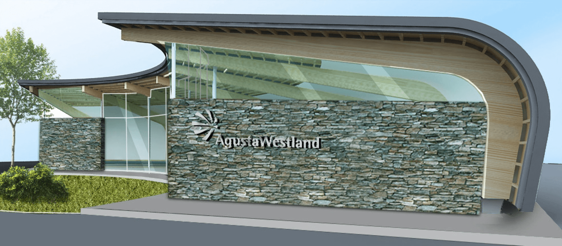 Auditorium, Hangar consegne elicotteri e Ufficio stile a Vergiate (Varese), Centro Simulatori volo a Sesto calende (Varese), Uffici operativi a Yeovil (Inghilterra)