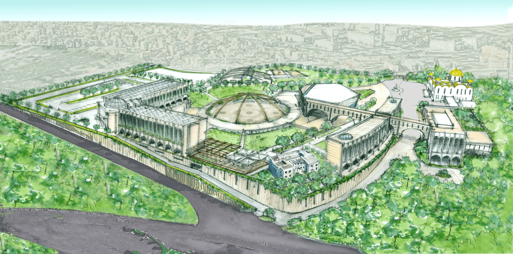 Centro culturale ucraino con hotel, residenze, sala conferenze, kindergarden, galleria d'arte , uffici, museo, area bar e ristorante