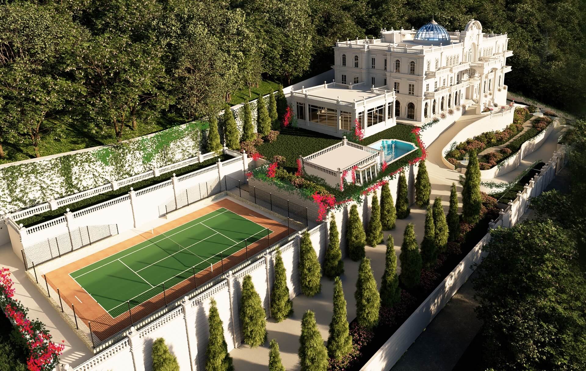 Residenza diplomatica in stile Neoclassico con 8 appartamenti privati, uffici, sala conferenze, sala cinema, sala banchetti, roof garden, piscina, spa, palestra, area verde, parcheggi, campo da tennis e percorso running