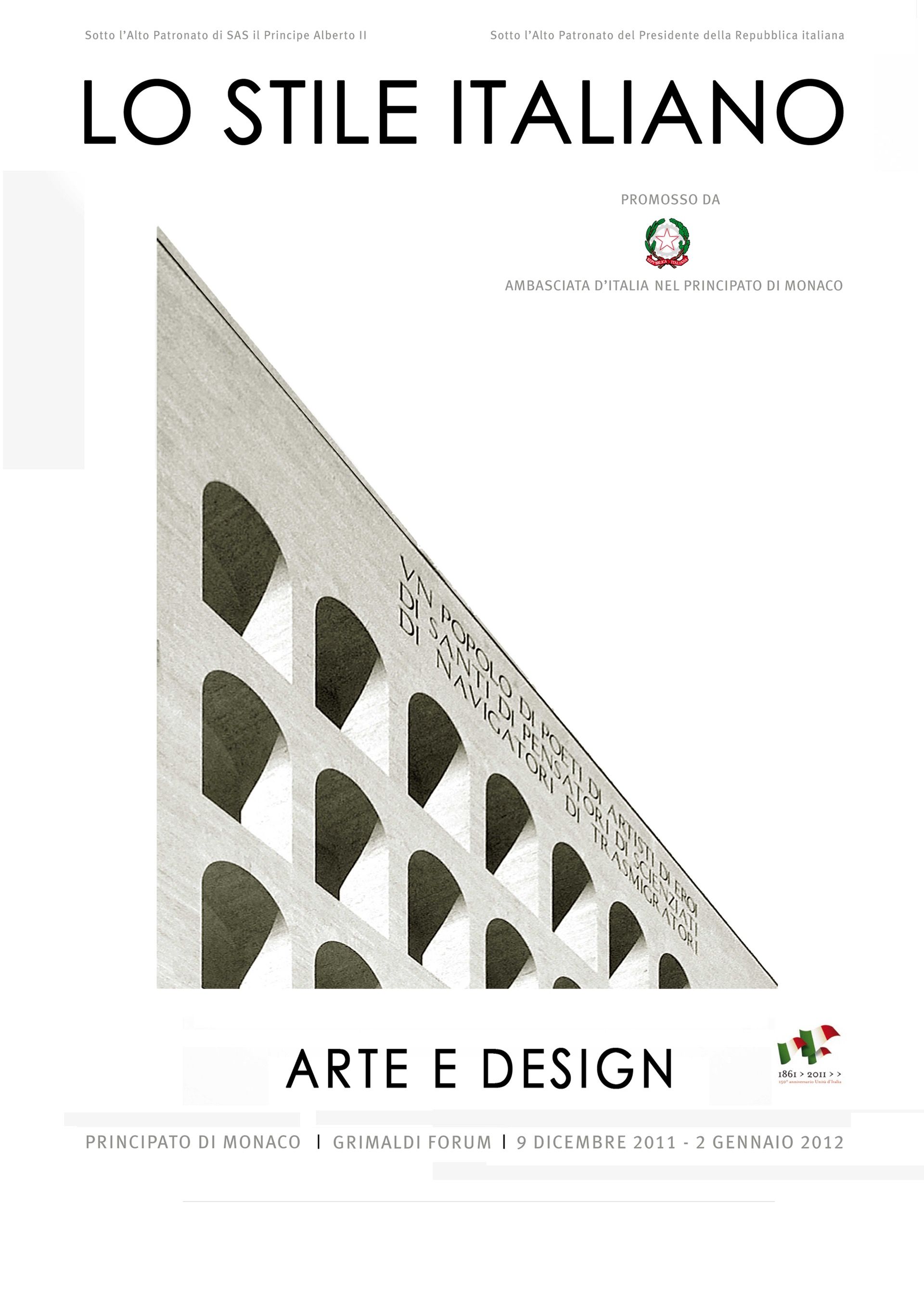 In occasione dei 150 anni dell'Unità d'Italia, la mostra "LO STILE ITALIANO, Arte e Design"celebra il “made in Italy” attraverso una selezione di opere che ripercorrono la sua storia dal 1861 ai giorni nostri, in collaborazione con il Massimo & Sonia Cirulli Archive di New York.